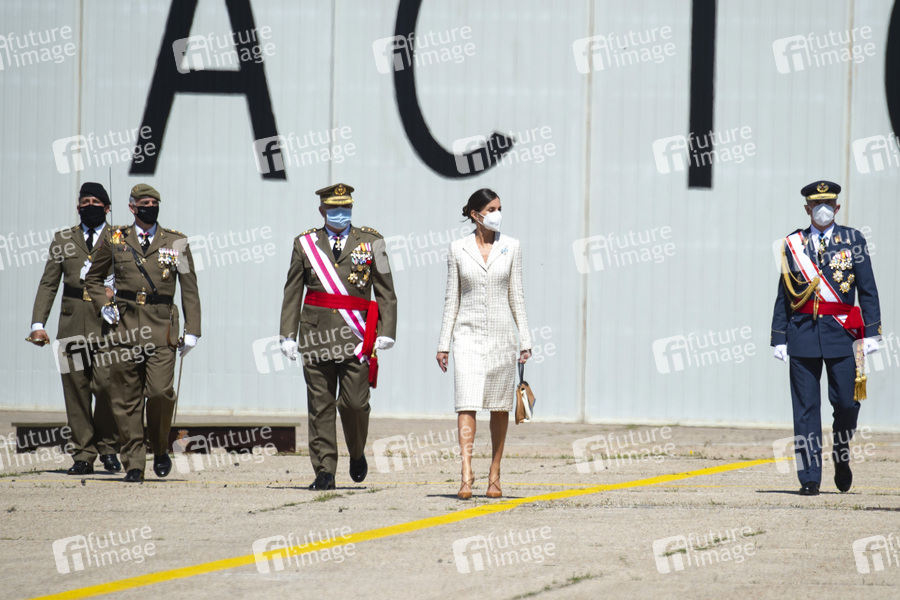 Königin Letizia von Spanien bei der Zeremonie der Übergabe der Nationalflagge an die ACAVIET (Luftfahrtakademie der Armee) in der Helipuerto Base Coronel Mate. Colmenar Viejo, 07.05.2021