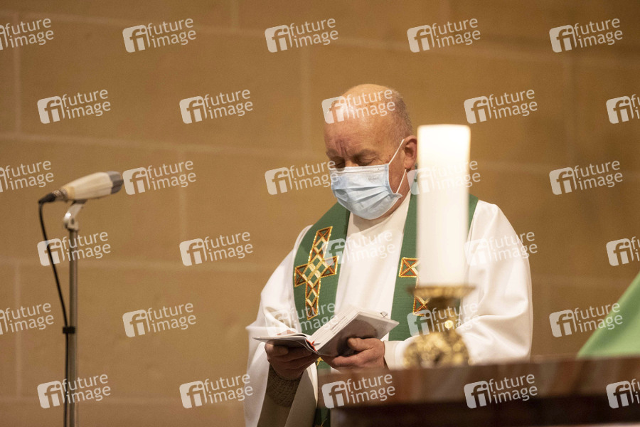 Der karnevalistische Gottesdienst fand unter 3G-Bestimmungen in der Severikirche auf dem Erfurter Domberg statt. Pfarrer Michael Neudert, gab den Karnevalisten, einschließlich den Prinzenpaaren Christian II. und Verena II. und den Kindern Luca I. und Noelanie I. den Segen für die anstehende Kampagne. (Person im Bild: Pfarrer Michael Neudert). Erfurt, 16.01.2022