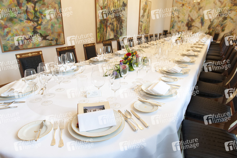 seit 1950 Amts- und Wohnsitz des Bundespräsidenten der Bundesrepublik Deutschland, seit 1994 Zweitwohnsitz, Regierungsgebäude, Bauwerk, Besteck, Geschirr, Tisch, Gedeck