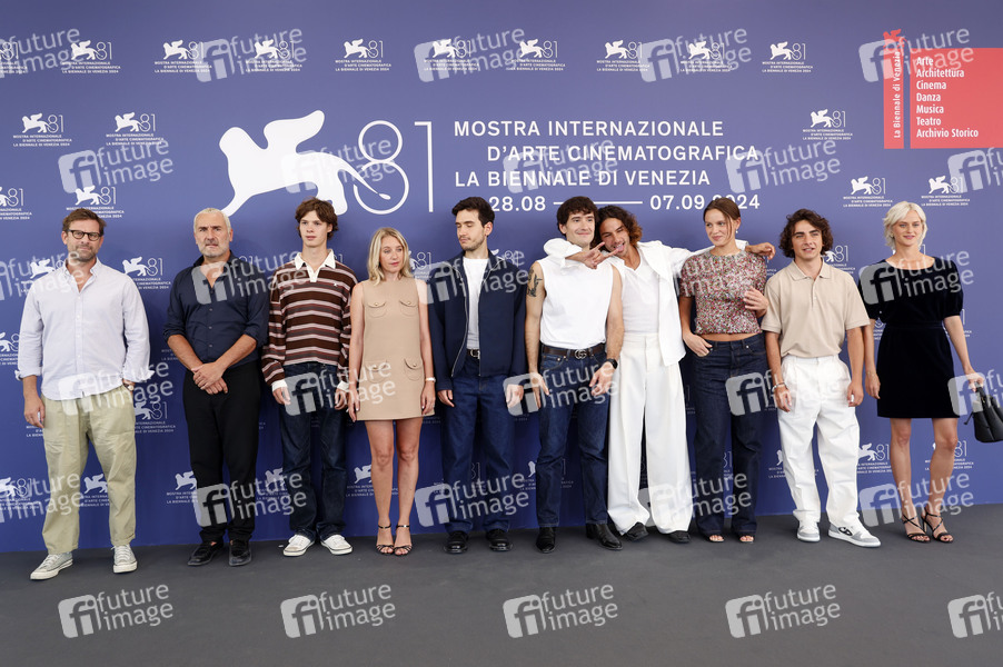 Nicolas Mathieu, Gilles Lellouche, Paul Kircher, Ludivine Sagnier, Ludovic Boukherma, Zoran Boukherma, Sayyid El Alami, Angélina Woreth, Louis Memmi und Christine Gautier beim Photocall zum Kinofilm 'Leurs enfants après eux / And Their Children After Them' auf der Biennale di Venezia 2024 / 81. Internationale Filmfestspiele von Venedig im Palazzo del Casino. Venedig, 31.08.2024