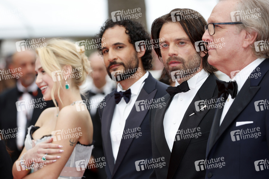 Maria Bakalova, Ali Abbasi, Sebastian Stan und Martin Donovan bei der Premiere des Kinofilms 'The Apprentice' auf dem Festival de Cannes 2024 / 77. Internationale Filmfestspiele von Cannes im Palais des Festivals. Cannes, 20.05.2024