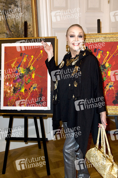 Barbara Schoene beim Kunstevent zum offiziellen Verkaufsstart der Kollektion 'Glööckler Art by Borelly' mit einer Installation der Berliner Mauer und zu Kunstobjekten stilisierten Panzern im Schloss Friedrichsfelde. Berlin, 23.10.2013