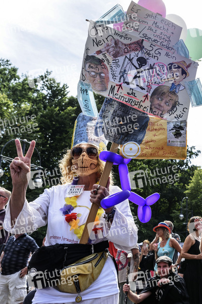 Demonstrationen von Corona-Leugnern unter dem Motto 'Der Tag der Freiheit - Das Ende der Pandemie' gegen die bestehenden Corona-Maßnahmen in Berlin. Wegen Nichteinhaltung der Hygiene- und Abstandsregeln wurde der Protest vorzeitig beendet. Berlin, 01.08.2020