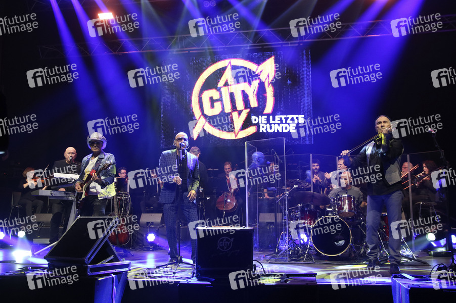 Manfred Hennig, Fritz Puppel, Toni Krahl und Georgi Gogow von City beim Pressetermin anlässlich ihrer Abschiedstour '50 Jahre City - Die letzte Runde' im Kesselhaus der Kulturbrauerei. Berlin, 14.09.2021