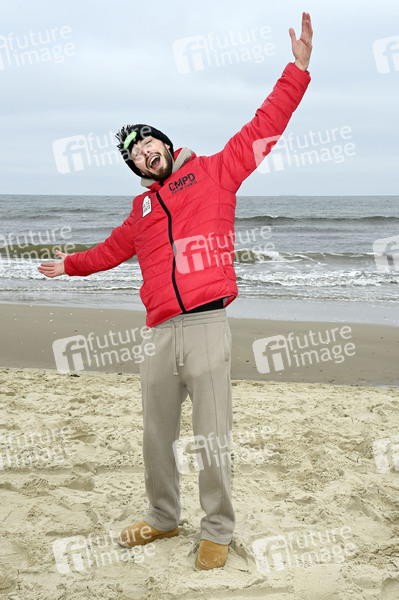 Mario Novembre beim 9. Baltic Lights 2025 Charity-Schlittenhunderennen zu Gunsten der Welthungerhilfe zwischen der Seebrücke Ahlbeck und der Seebrücke Heringsdorf. Heringsdorf, 01.03.2025