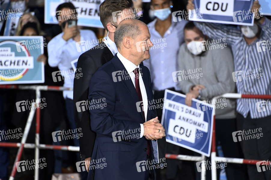 Olaf Scholz beim 'Triell - Dreikampf ums Kanzleramt' von ARD und ZDF mit den Kanzlerkandidaten im Studio Berlin-Adlershof. Berlin, 12.09.2021