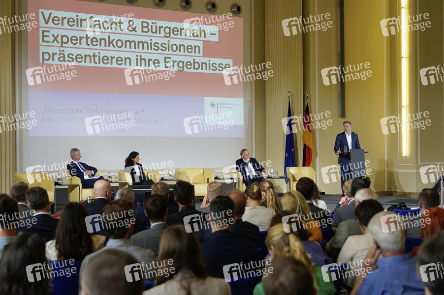 Christian Lindner bei der Veranstaltung 'Vereinfacht und Bürgernah - Expertenkommissionen präsentieren ihre Ergebnisse' im Bundesministerium der Finanzen. Berlin, 12.07.2024