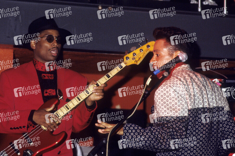 Terry Lewis und Morris Day von The Time live bei einem Showcase zum Album 'Pandemonium' im Subterania. London, 31.08.1990