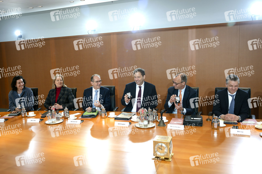 Dorothee Bär, Bärbel Bas, Alexander Dobrindt, Lars Klingbeil, Friedrich Merz und Thorsten Frei in der 29. Sitzung des Bundeskabinetts im Bundeskanzleramt. Berlin, 14.01.2026