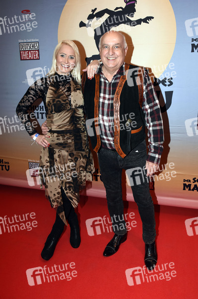 Axel Munz mit Freundin Yve Muc bei der Premiere des Musicals 'Der Schuh des Manitu' im Deutschen Theater. München, 14.10.2021