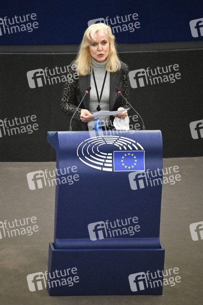 Tiertransporte, Plenartagung, Plenardebatte, Plenarsitzung, Debatte, Rede, Außenpolitik, Strasbourg, Europaparlament, EU-Parlament, EP, Parlament der Europäischen Union, Parlamentum Europaeum, MdEP, Mitglied des Europäischen Parlaments, Politikerin, Frankreich, Rassemblement National, RN, Fraktion Identität und Demokratie, ID
