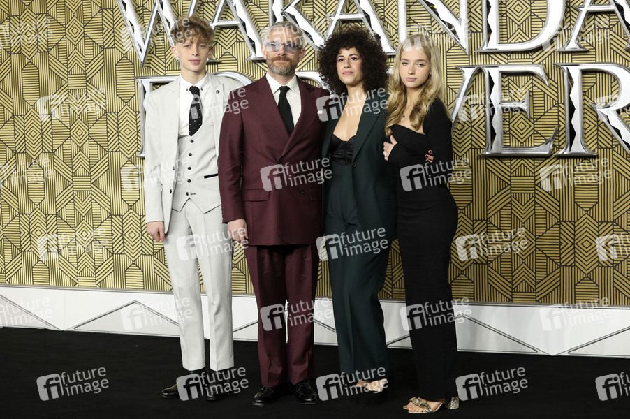 Martin Freeman, mit Freundin Rachel Mariam, Sohn Joe Freeman und Tochter and Grace Freeman bei der Premiere des Kinofilms 'Black Panther: Wakanda Forever' im Cineworld Leicester Square. London, 03.11.2022
