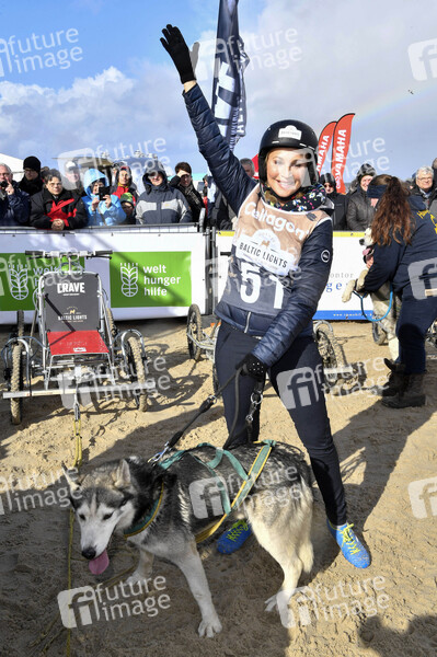 Moderatorin, Schauspielerin, Prominenz, Celebrity, Celebrities, Tier, Hund, Hunde, Huskys, Husky, Unterhaltung, Entertainment, Schlittenhunderennen, Ostsee, Sport, Charity, Benefiz