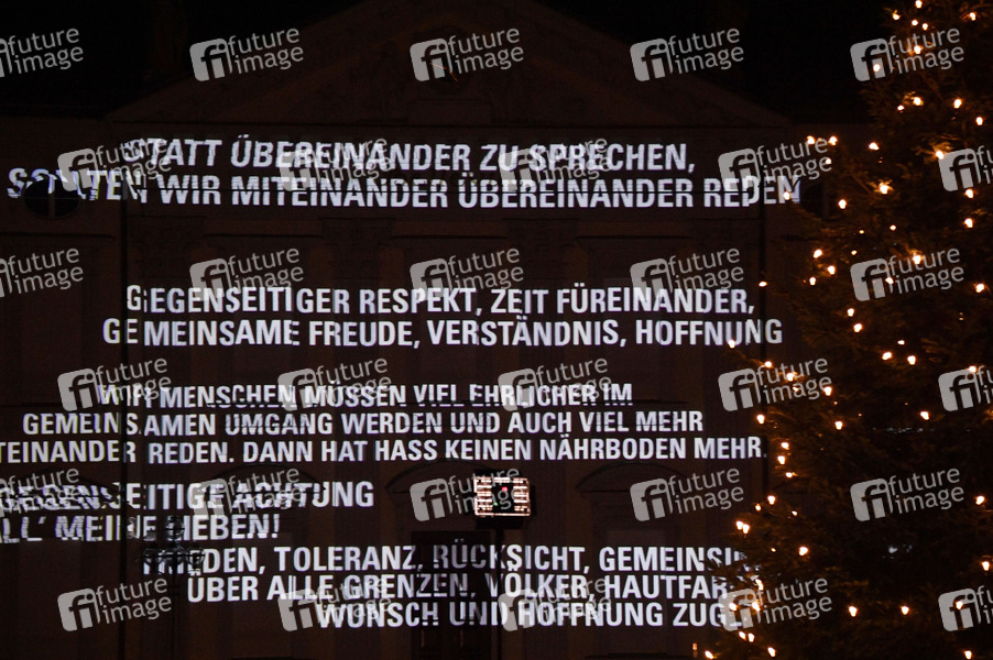 Lichtinstallation, Lichtblicke, Licht, Projektion, Beleuchtung, Illumination, Abend, Abendstimmung, Amtssitz, Weihnachtsbaum
