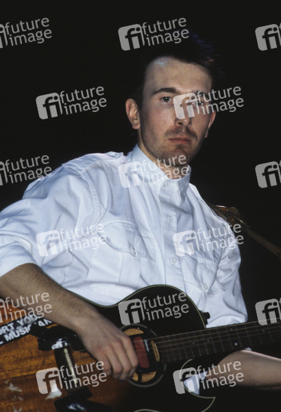 The Edge von U2 live bei einem Konzert der 'The Unforgettable Fire'-Tour in der Wembley Arena. London, 14.11.1984