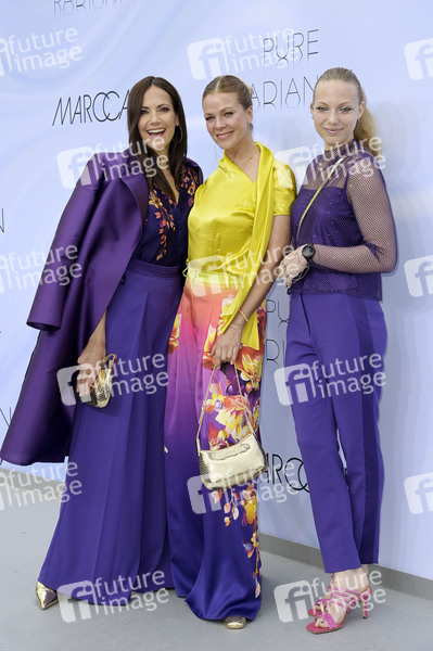 Bettina Zimmermann, Jessica Schwarz und Marlena Selikovsky bei der Marc Cain Fashion Show 'Pure Radiance - Frühjahr/Sommer 2025' auf der Berlin Fashion Week S/S 2025 in der Kolonnade mit Triumphtor am Neuen Palais. Potsdam, 02.07.2024