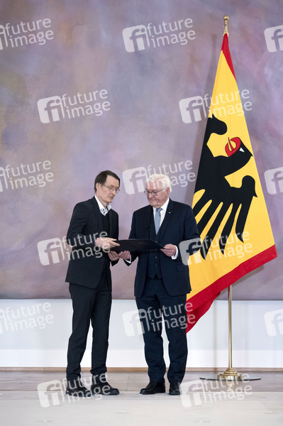 Karl Lauterbach und Frank-Walter Steinmeier bei der Entlassung der Bundesregierung des 20. Deutschen Bundestages durch den Bundespräsidenten im Schloss Bellevue. Berlin, 25.03.2025
