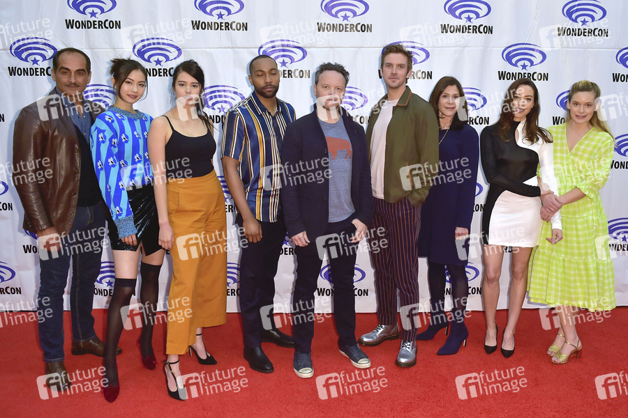 Navid Negahban, Lauren Tsai, Amber Midthunder, Jeremie Harris, Noah Hawley, Dan Stevens, Lauren Shuler Donner, Aubrey Plaza und Rachel Keller beim Photocall zur FX TV-Serie 'Legion' auf der WonderCon 2019 im Anaheim Convention Center. Anaheim, 29.03.2019