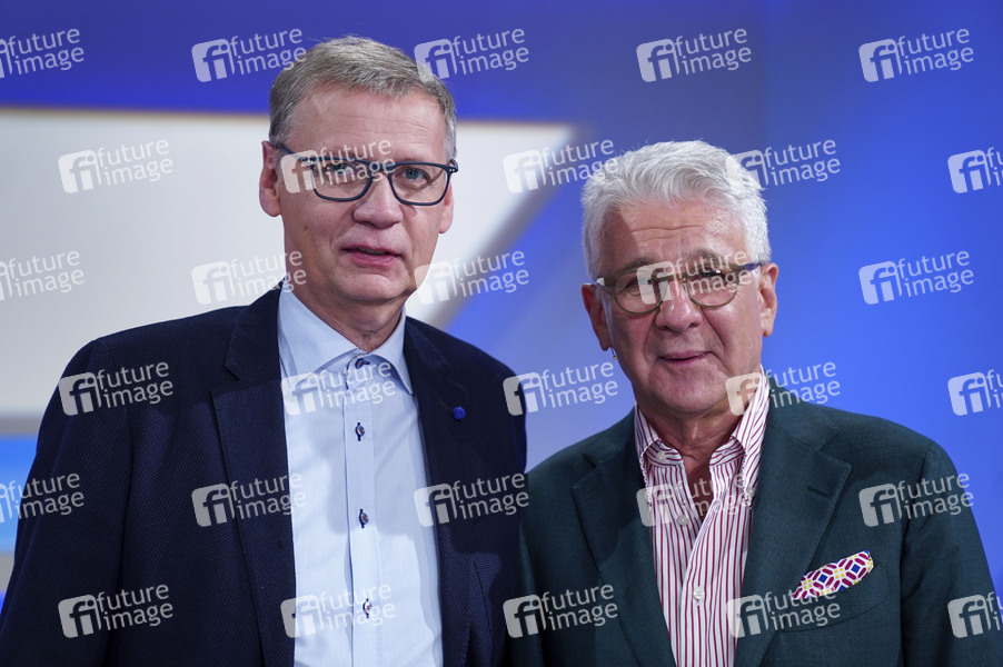 Günther Jauch und Marcel Reif in der ARD-Talkshow 'maischberger. die woche' im WDR Studio BS 3. Köln, 13.11.2019