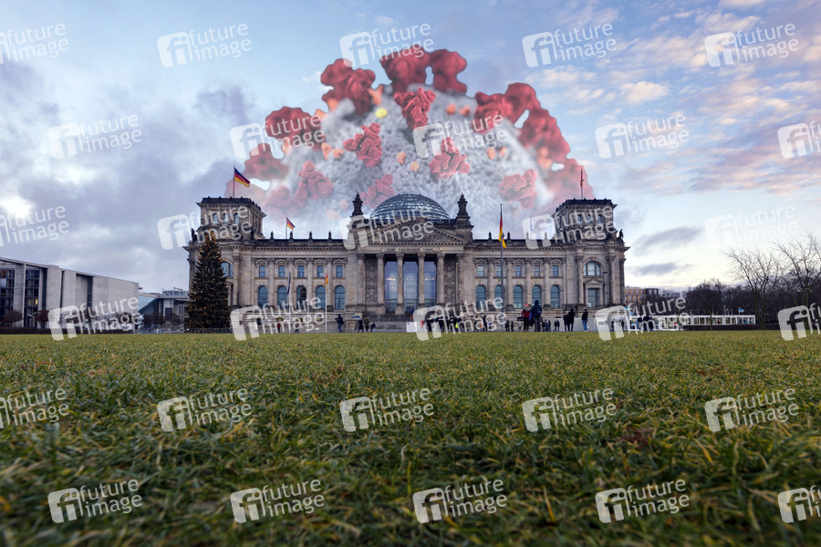Coronavirus am Deutschen Bundestag im Regierungsviertel (unter Verwendung einer Corona-Grafik des CDC released unter Public Domain). Berlin, 05.03.2020