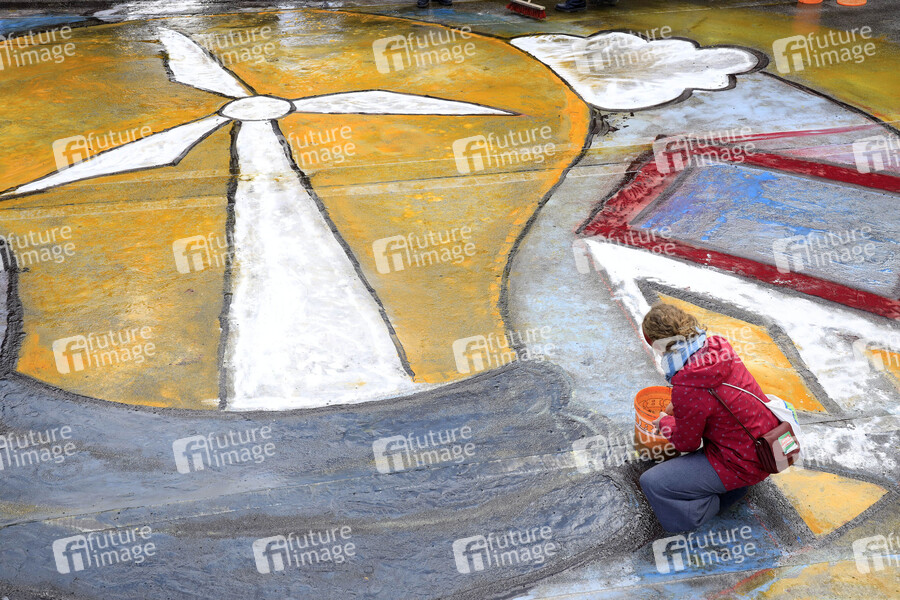 Am Freitag finden mehrere Demonstrationen zum globalen Klimastreik von Fridays for Future in Berlin statt. An der Oberbaumbrücke bemalen Aktivisten die Straße zum Thema 'Another World is possible'. Berlin, 19.03.2021