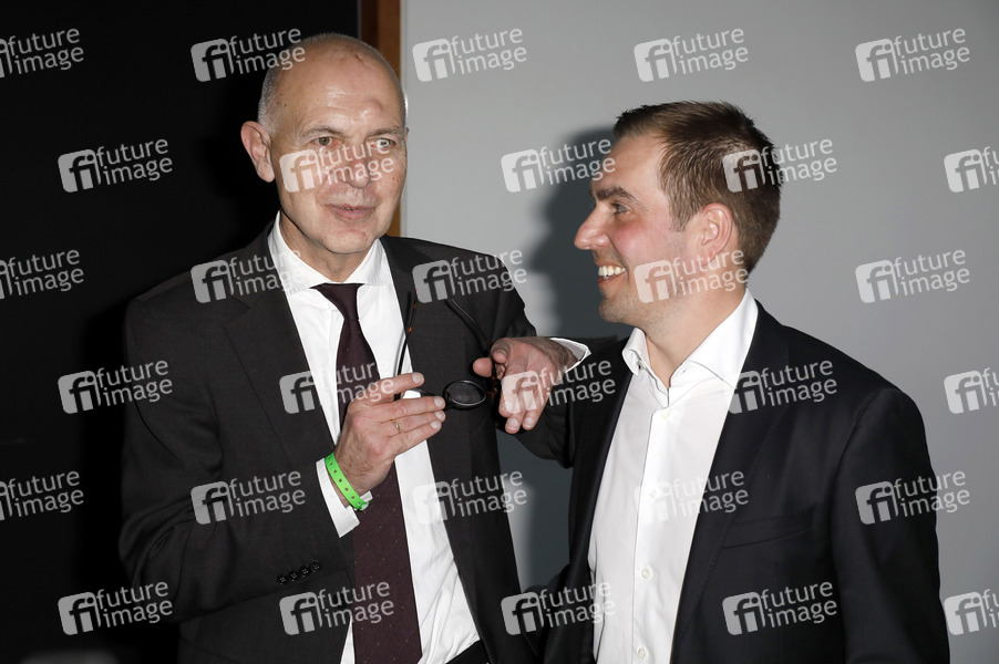 Bernd Neuendorf und Philipp Lahm bei der Verleihung der Sepp-Herberger-Awards 2022 in der Telekom-Hauptstadtrepräsentanz. Berlin, 28.03.2022