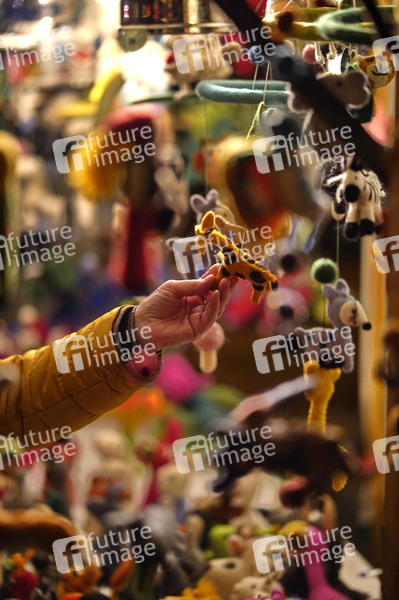 Weihnachtliche Dekorationsartikel an einem Verkaufsstand