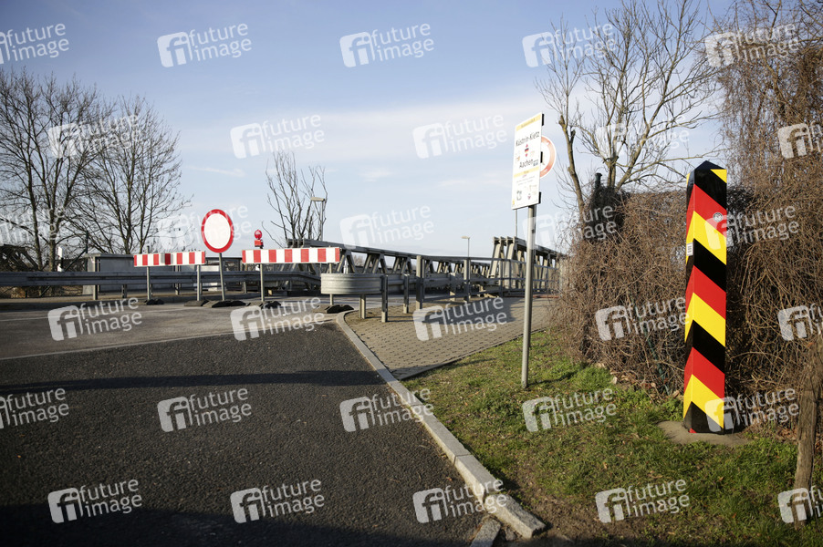 Der gesperrte Grenzübergang von Küstrin nach Kostrzyn. Die Grenzen zwischen Polen und Deutschland sind wegen des Coronavirus geschlossen. Küstrin, 16.03.2020