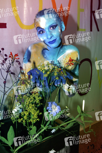 Bodypainting und Fotoshooting mit Model Sarah am Tag der offenen Tür der Meisterschule Justus-von-Liebig-Schule, Abteilung Floristik in Hannover-Ahlem. Künstler: Jörg Düsterwald