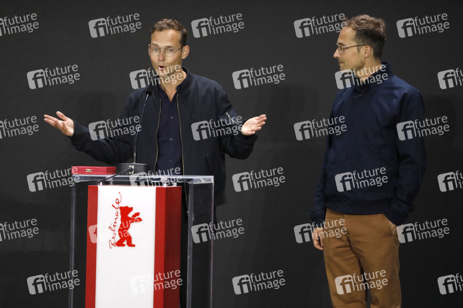 Ramon Zürcher und Silvan Zürcher mit dem Encounters Preis für die besten Regie bei 'Das Mädchen und die Spinne' bei der Preisverleihung der Berlinale Summer Special 2021 / 71. Internationale Filmfestspiele Berlin im Freiluftkino Museumsinsel. Berlin, 13.06.2021