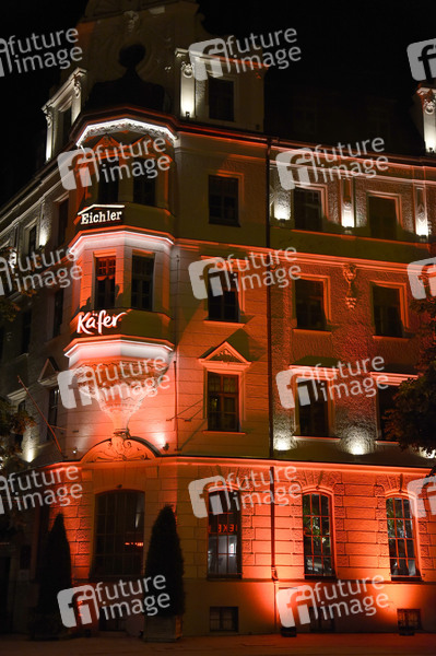 Beleuchtetes Restaurant Käfer-Schänke - Mit der bundesweiten Aktion 'Night of Light' macht die Veranstaltungsbranche auf ihre finanzielle Notlage durch die Corona-Krise aufmerksam. München, 22.06.2020