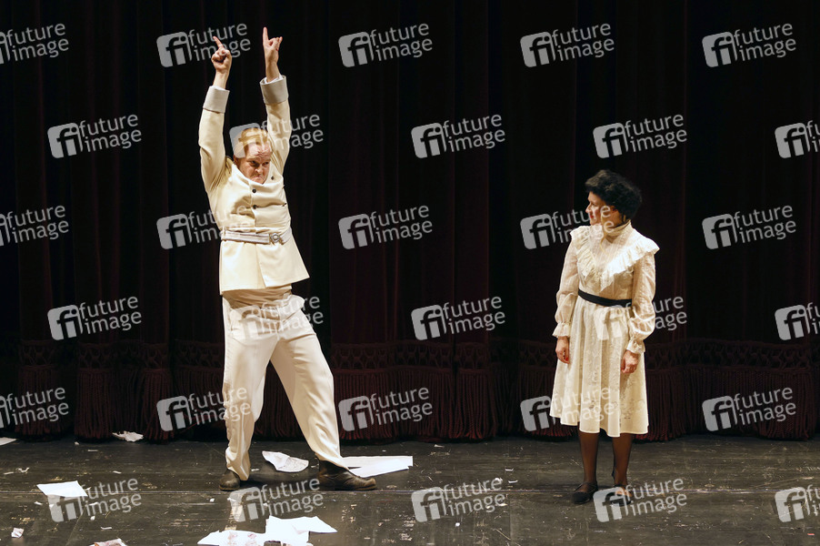 Felix Goeser und Anja Schneider bei der Fotoprobe des Theaterstücks 'Auferstehung' im Deutschen Theater. Berlin, 24.11.2021