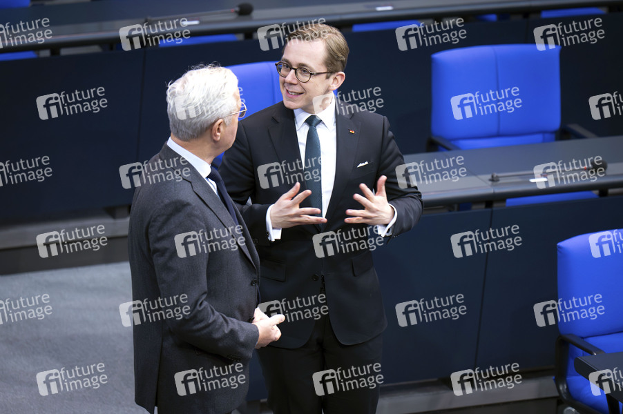 Nobert Röttgen und Philipp Amthor beim Trauerstaatsakt für die verstorbene Bundestagspräsidentin a.D. Rita Süssmuth im Plenarsaal des Deutschen Bundestages. Berlin, 24.02.2026