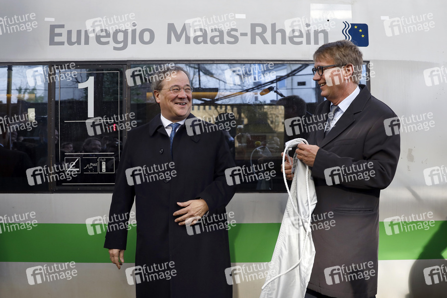 Armin Laschet und Ronald Pofalla bei der Taufe der ICE 'Euregio Maas-Rhein' im Hauptbahnhof. Aachen, 17.02.2020