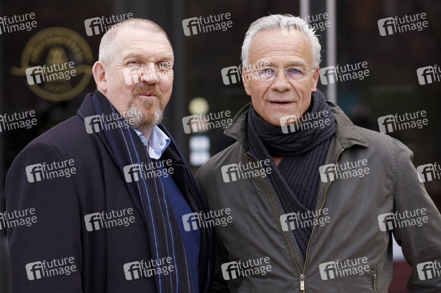 Dietmar Bär und Klaus J. Behrendt beim Fototermin am Set des 80. Tatorts aus Köln 'Tatort - Der Tod der Anderen' am Hotel Rheinpalais. Köln, 27.11.2019