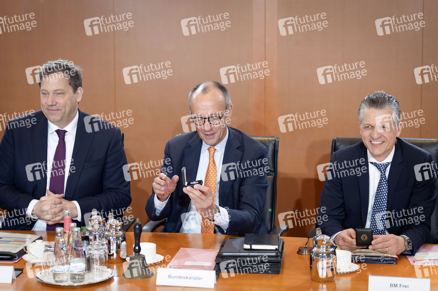 Lars Klingbeil, Friedrich Merz und Thorsten Frei in der 29. Sitzung des Bundeskabinetts im Bundeskanzleramt. Berlin, 14.01.2026