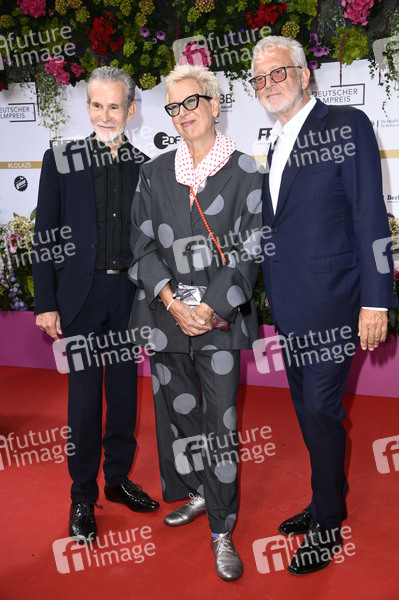 Ulrich Matthes, Doris Dörrie und Martin Moszkowicz bei der 75. Verleihung des Deutschen Filmpreises 2025 im Theater am Potsdamer Platz. Berlin, 09.05.2025
