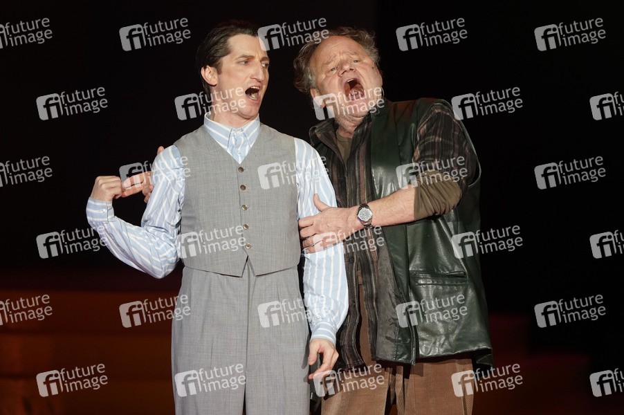 Christopher Nell und Gottfried Breitfuss bei der Fotoprobe der Oper 'Pferd frisst Hut' unter der Regie von Herbert Fritsch in der Komischen Oper Berlin im Schillertheater. Berlin, 05.02.2025