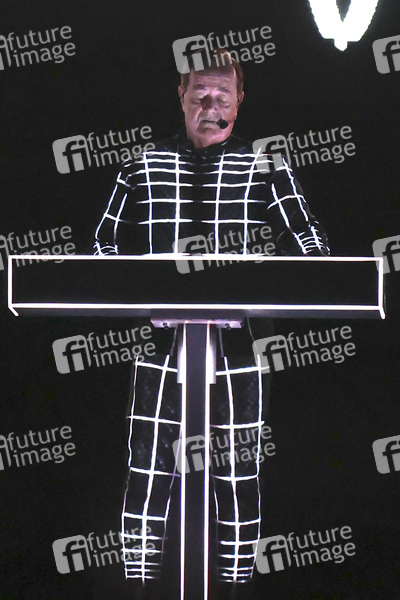 Ralf Hütter von Kraftwerk live bei einem Konzert ihrer 'Multimedia Tour' in der Mitsubishi Electric Halle. Duesseldorf, 14.12.2025