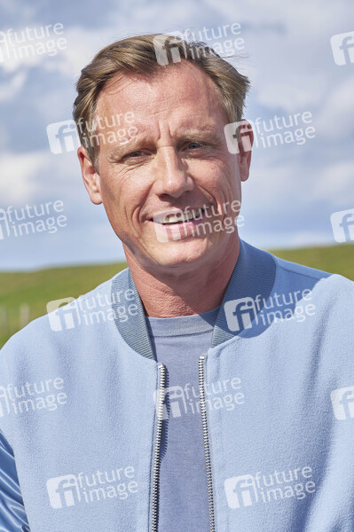 Patrick Kalupa als Dr. Moritz Neiss bei Dreharbeiten zur ZDF-Fernsehserie 'Dr. Nice' am Leuchtturm Falshöft. Pommerby, 11.09.2025