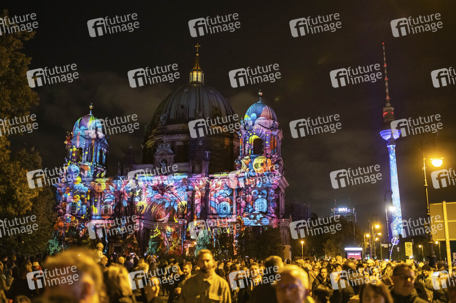 Der Boulevard Unter den Linden. Das Festival of Lights Berlin gehört zu den bekanntesten Lichtfestivals weltweit. Es ist ein kostenloser Event in Berlin, der jährlich im Herbst stattfindet und 10 Tage lang bekannte Berliner Sehenswürdigkeiten durch Illuminationen, lichtkünstlerische Projektionen und 3D-Mappings aufwändig in Szene setzt. Berlin, 06.10.2024