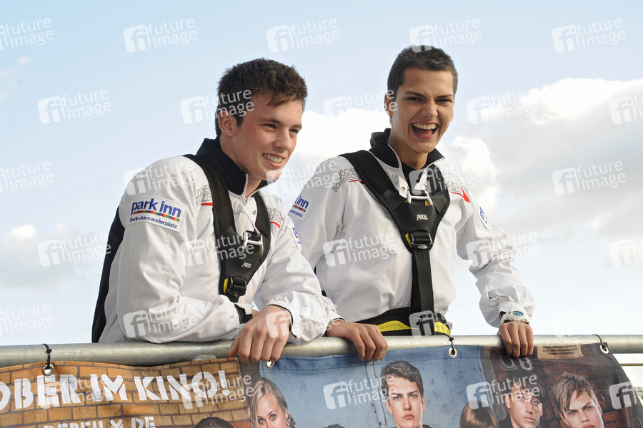 Base Flying von Jochen Schweizer mit den Hauptdarstellern von 'Gangs' auf dem Park Inn Hotel am Alexanderplatz in Berlin