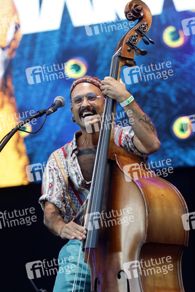 Ahmed Eid von der Band Bukahara live im Kulturgarten in der Bonner Rheinaue. Das Bonn Live Kulturgarten Open Air Festival 2020 ist Europas erstes Open Air Musik Festival unter Corona-Auflagen wegen der Covid-19 Pandemie. Bonn, 21.07.2020