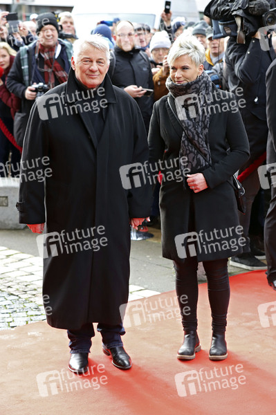 Heinz Hoenig und Ehefrau Annika Kärsten-Hoenig bei der Trauerfeier für Jan Fedder in der Hauptkirche St. Michaelis. Hamburg, 14.01.2020