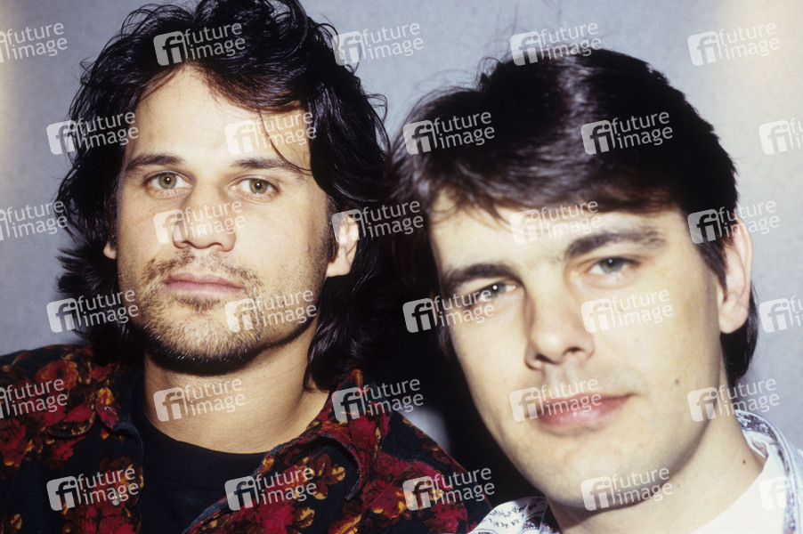 Jon Stevens und Stuart Fraser von Noiseworks bei einem Photoshooting bei der Plattenfirma. London, 10.10.1991