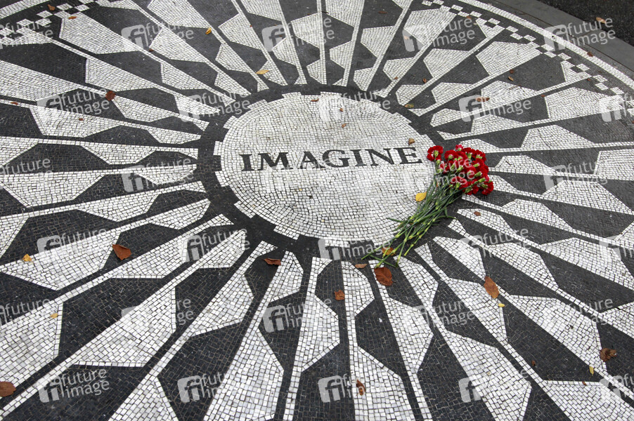 kleiner Bereich im Central Park, gestaltet von Yoko Ono, gewidmet John Lennon, Einweihung 9. Oktober 1985, Mosaik aus schwarzen und weißen Steinchen
