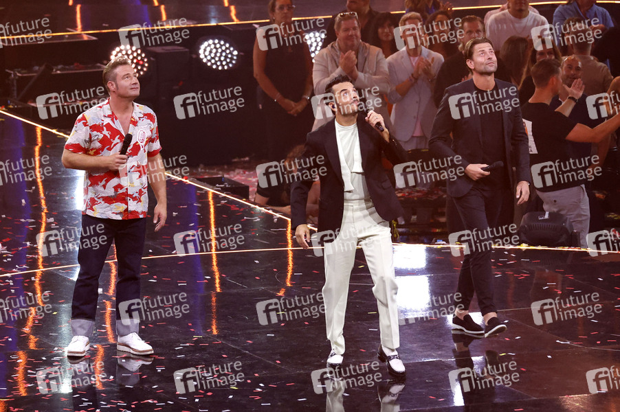 Dick Brave, Giovanni Zarrella und Roman Weidenfeller in der ZDF-Musikshow 'Die Giovanni Zarrella Show - Die große Sommerparty' in der Westfalenhalle. Dortmund, 23.08.2025