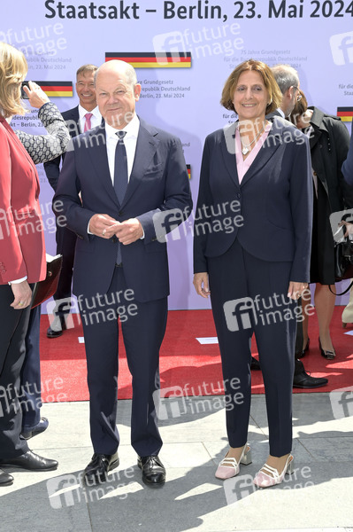 Olaf Scholz mit Ehefrau Britta Ernst beim Staatsakt zu 75 Jahre Grundgesetz auf dem Forum zwischen Bundestag und Kanzleramt. Berlin, 23.05.2024