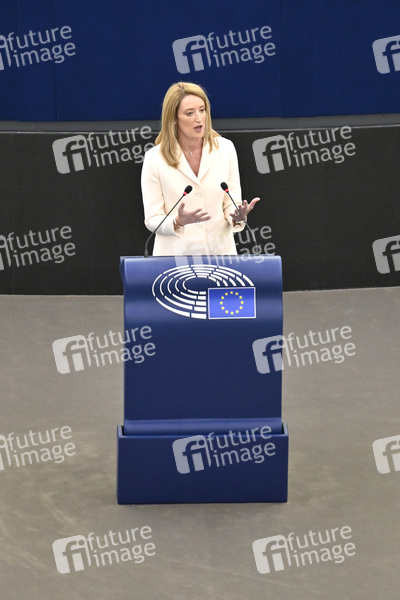 Roberta Metsola bei der Präsidentschaftskandidaten-Präsentation im Plenarsaal des Europäischen Parlaments. Straßburg, 18.01.2022