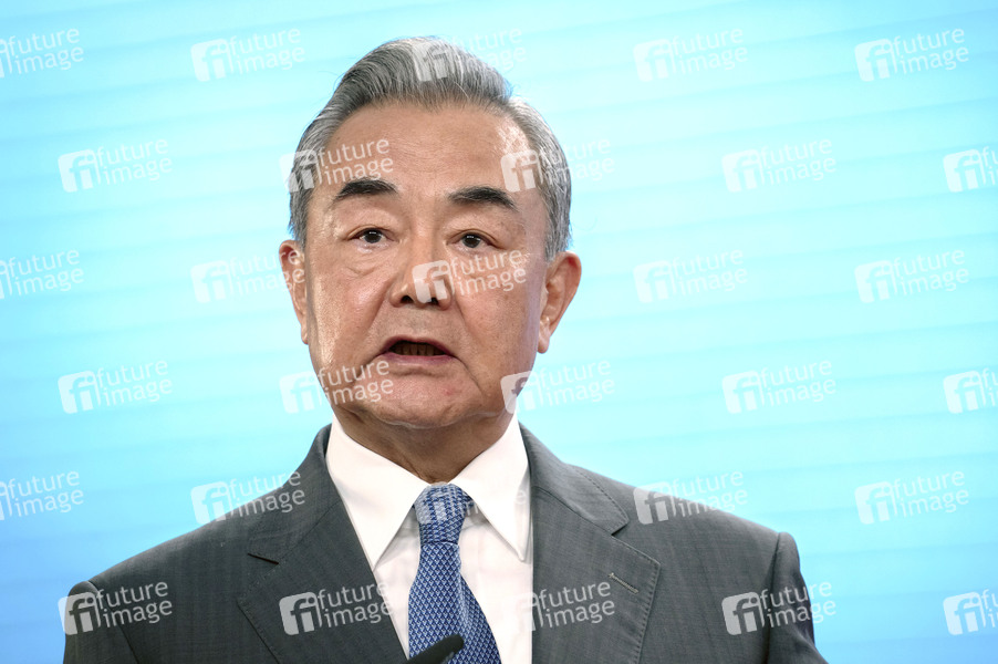 Wang Yi bei einer gemeinsamen Pressekonferenz des chinesischen Außenministers und des deutschen Außenministers im Auswärtigen Amt. Berlin, 03.07.2025